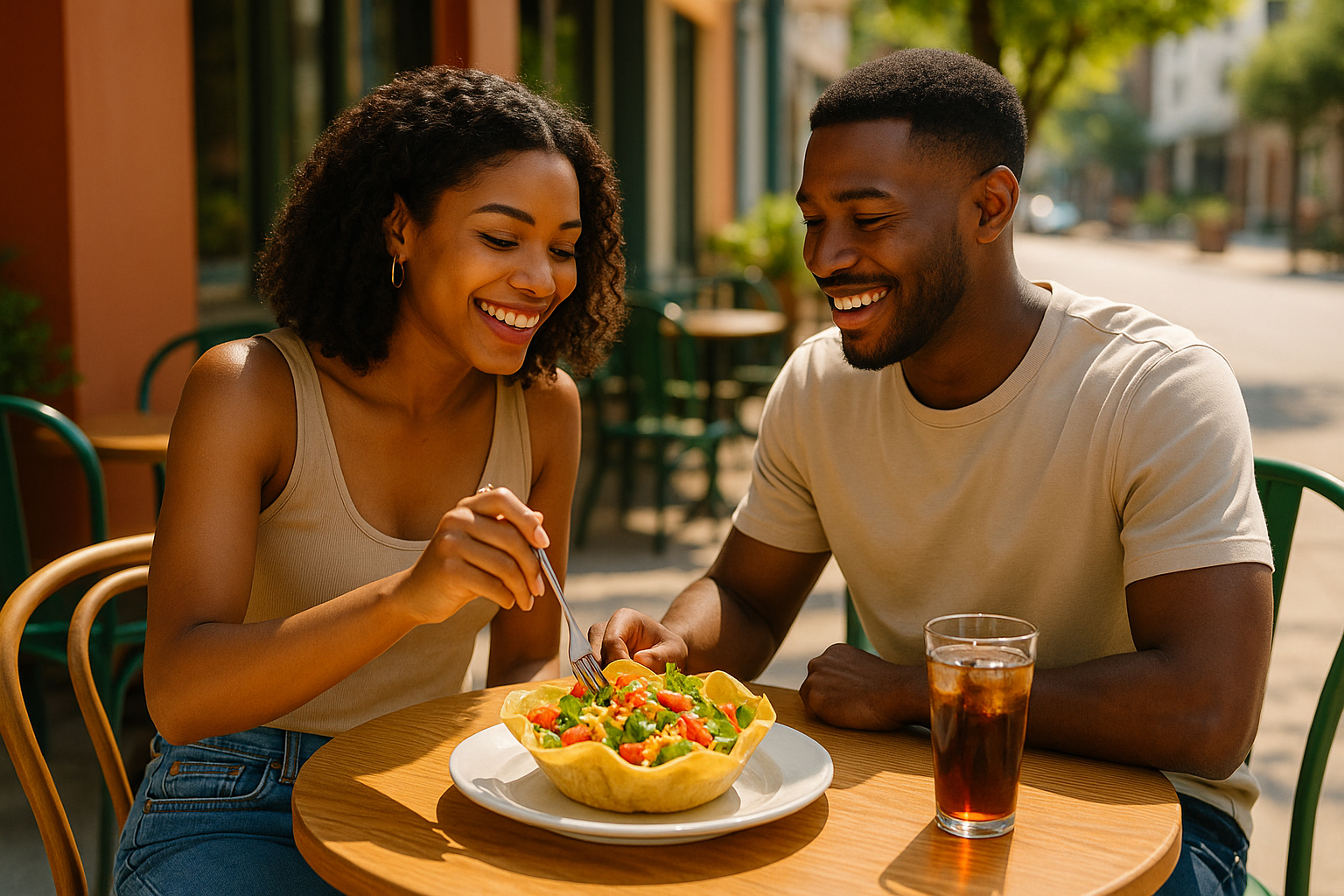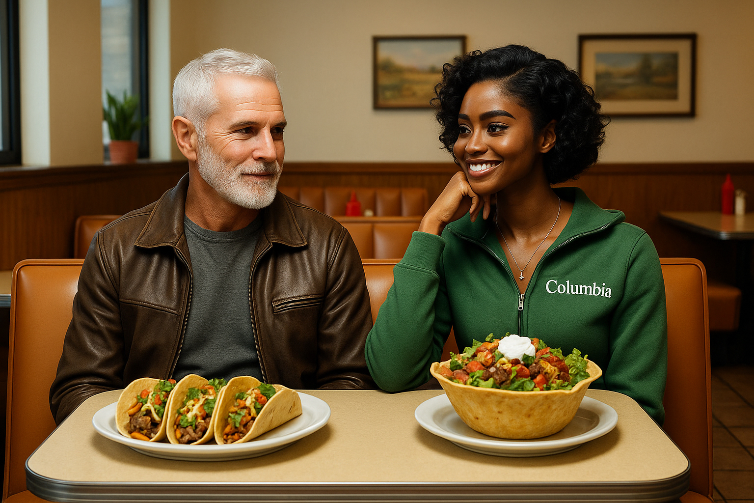 Aaron Rizzer and Belle Marie Belizaire savor a special moment. Their laughter and unspoken understanding fill the space, a quiet testament to the bond that needs no words, only the comfort of each other’s company and their favorite Mexican food.*